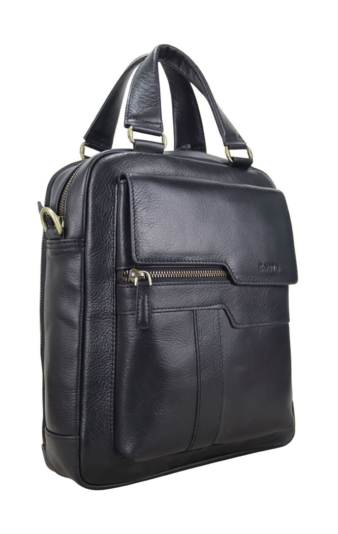 SİYAH KRİSTAL HAKİKİ DERİ ERKEK EL OMUZ ASKILI ÇANTA 0507
